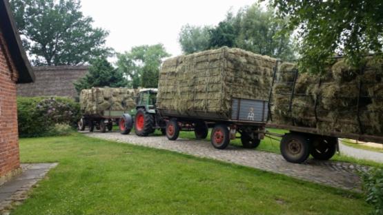 Außerhalb der Weidezeit füttern wir gutes Heu direkt aus der Nachbarschaft.